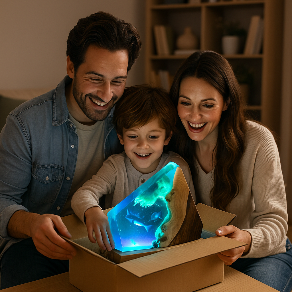 Jede Leuchte wird von Hand gefertigt – aus edlen Hölzern und glasklarem Epoxidharz. So entsteht ein wirklich einzigartiges Stück. Das ist nicht einfach Beleuchtung – es ist eine Lichtskulptur mit Seele. Natürliche Materialien, ein individuelles Design und warmes, weiches Licht schaffen eine Atmosphäre von Gemütlichkeit, Stil und Harmonie.